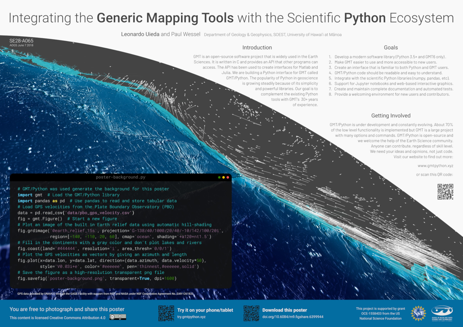 “Integrating the Generic Mapping Tools with the Scientific Python Ecosystem”. 2018. Leonardo Uieda and Paul Wessel. Presented at AOGS Annual Meeting 2018. doi:10.6084/m9.figshare.6399944